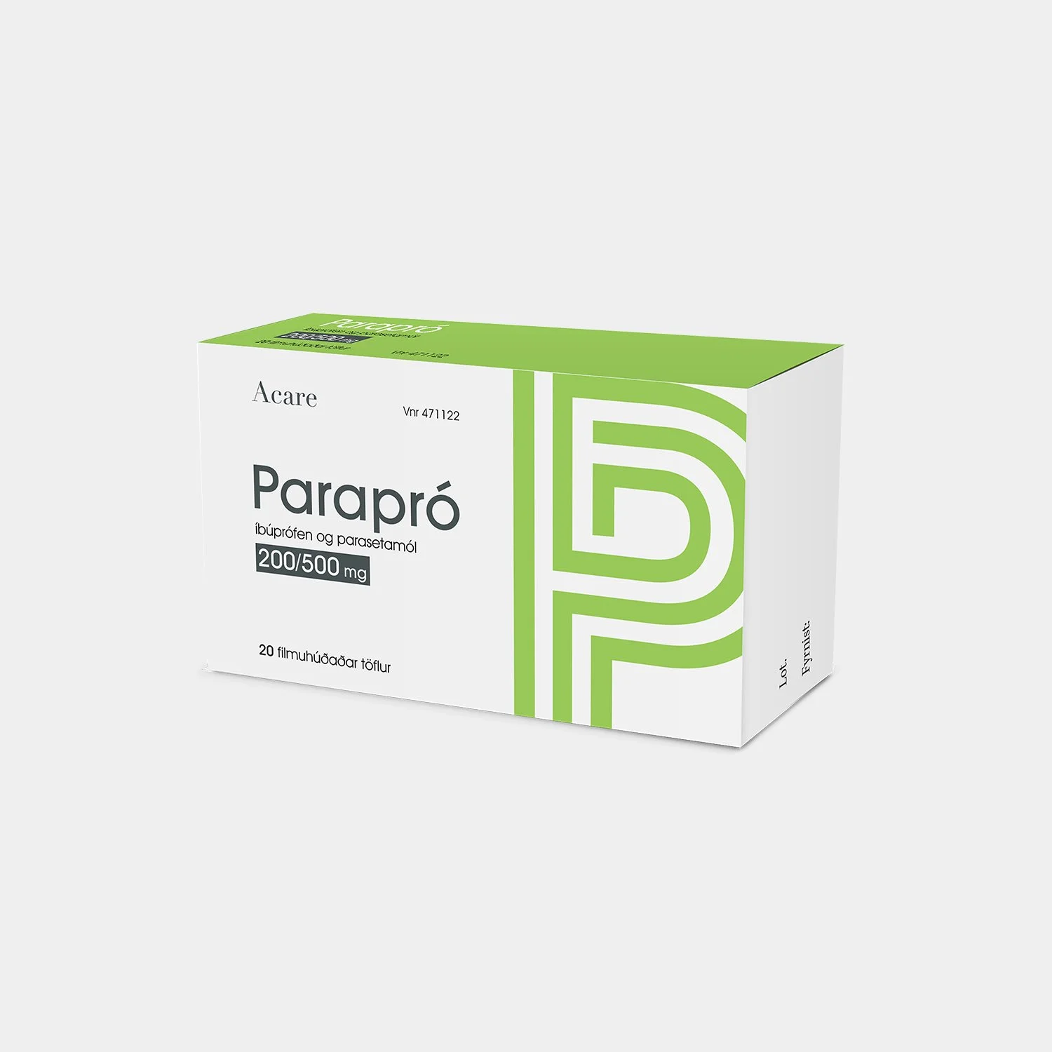 Parapró er notað tímabundið við vægum eða meðalmiklum verkjum sem tengjast mígreni, höfuðverk, bakverk, tíðaverk, tannverk, lið- og vöðvaverkjum, vægri liðagigt og kvef- og flensueinkennum, særindum í hálsi og hita.